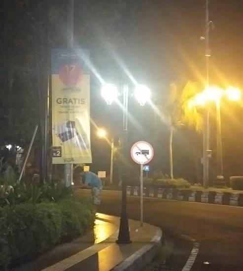 T banner ini dipasang di depan Plaza Renon untuk mempromosikan usaha jasa. Menggunakan bambu sebagai media penyangga dan berbahan dasar vinil untuk cetakan desainnya. More Info Available Price