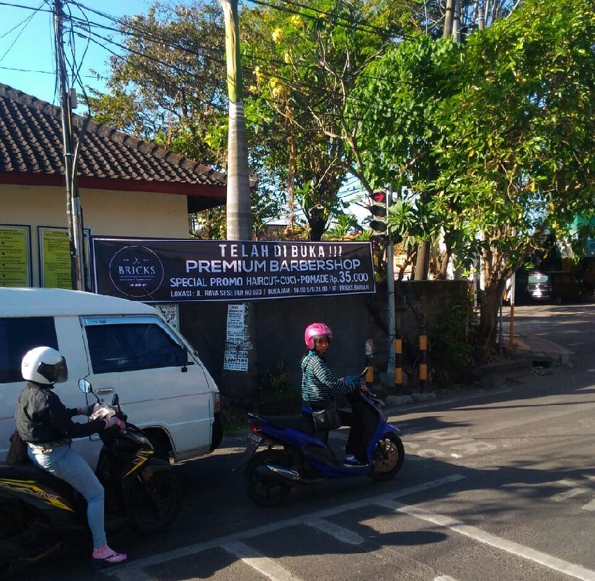 Spanduk ini berbahan dasar vinil. Digunakan untuk mempromosikan usaha jasa pemotongan rambut Bricks yang berlokasi di JL. Raya Sesetan. Spanduk ini dipasang di seputar Denpasar More Info Available Price